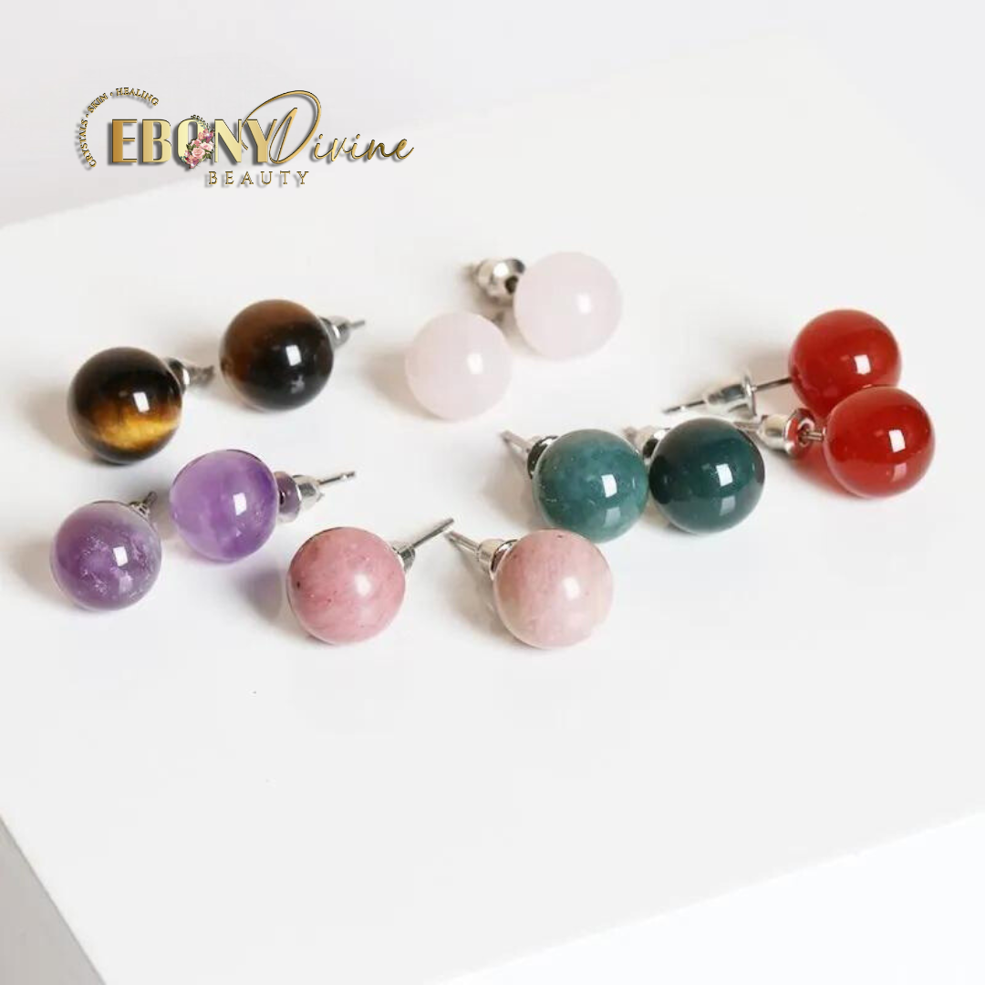 Elevate your style with our Round Ball Natural Crystal Stud Earrings, showcasing the beauty of various gemstone variants. Each pair features handpicked crystals, bringing unique energies to complement your aura. Explore a spectrum of stunning crystal variants: